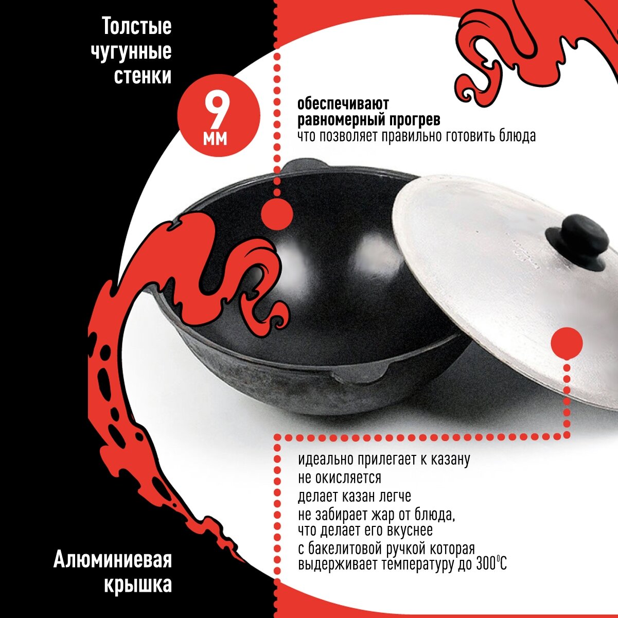 Казан чугунный Наманган Узбекский c плоским дном книгой рецептов и специями