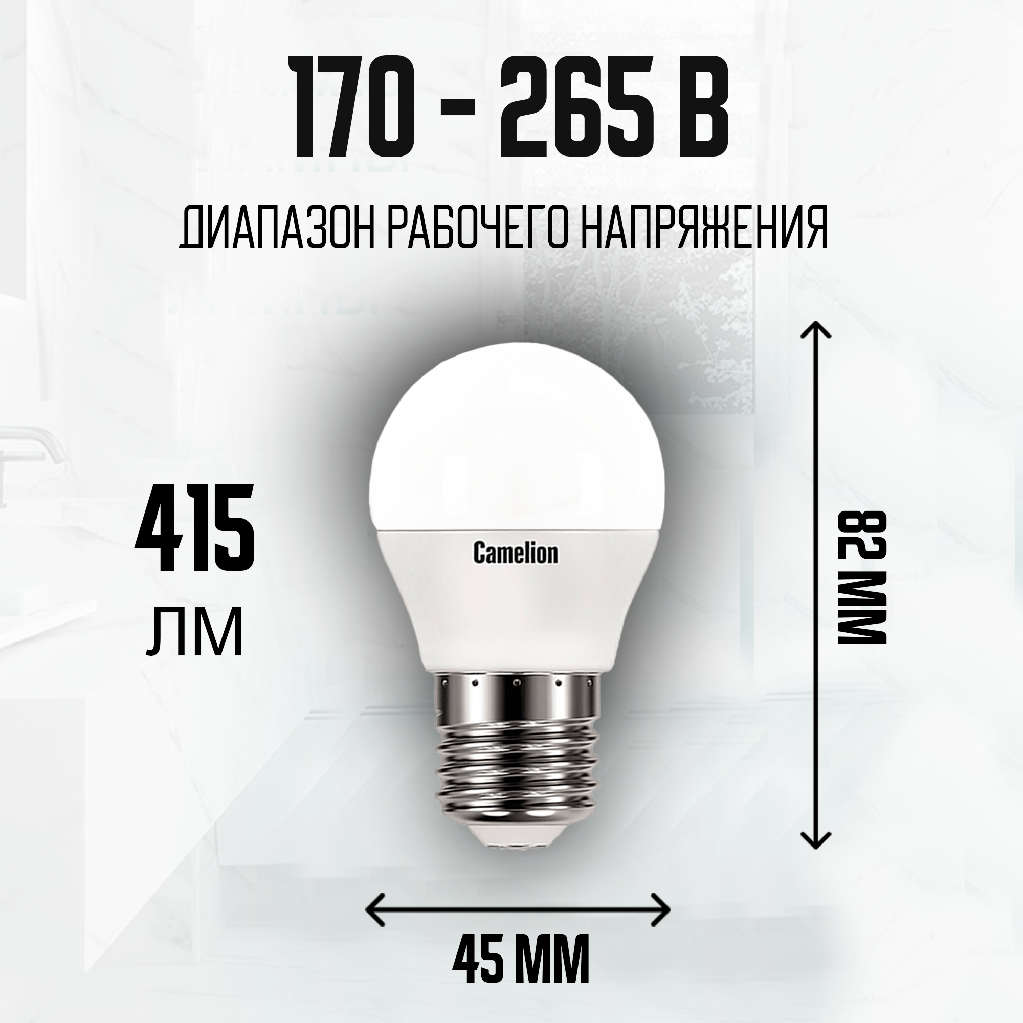 Лампочки светодиодные Camelion LED5-G45/845/E27 упаковка 10 шт информация: