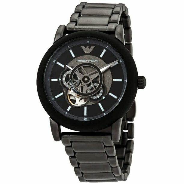 Наручные часы EMPORIO ARMANI AR1981 механические, автоподзавод, скелетон, водонепроницаемые, подсветка стрелок