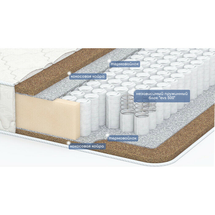 Матрас Капризун "Дрим Хард", коксовая койра 1 см с двух сторон, пружинный блок EVS 500, съемный белый чехол, 195х80х18 см 8 490 ₽