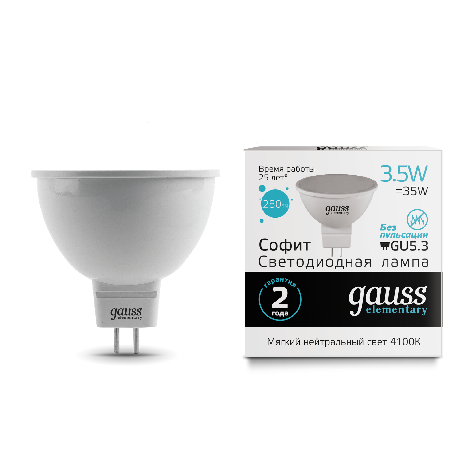 Отзывы на Лампа светодиодная gauss Elementary MR16 13524, GU5.3, MR16, 3.5 Вт, 4100 К