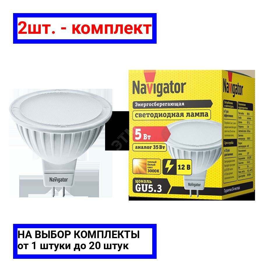 10 цен на Лампочка светодиодная Navigator NLL-MR16, 94262, GU5.3, 5W, 3000K, 12В, теплый свет (2шт)