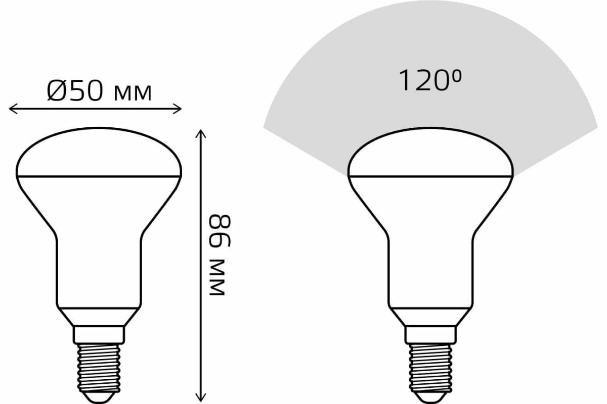 Gauss R50 E14 6W(500 lm) 2700K 2K матовая, алюм./пластик 106001106