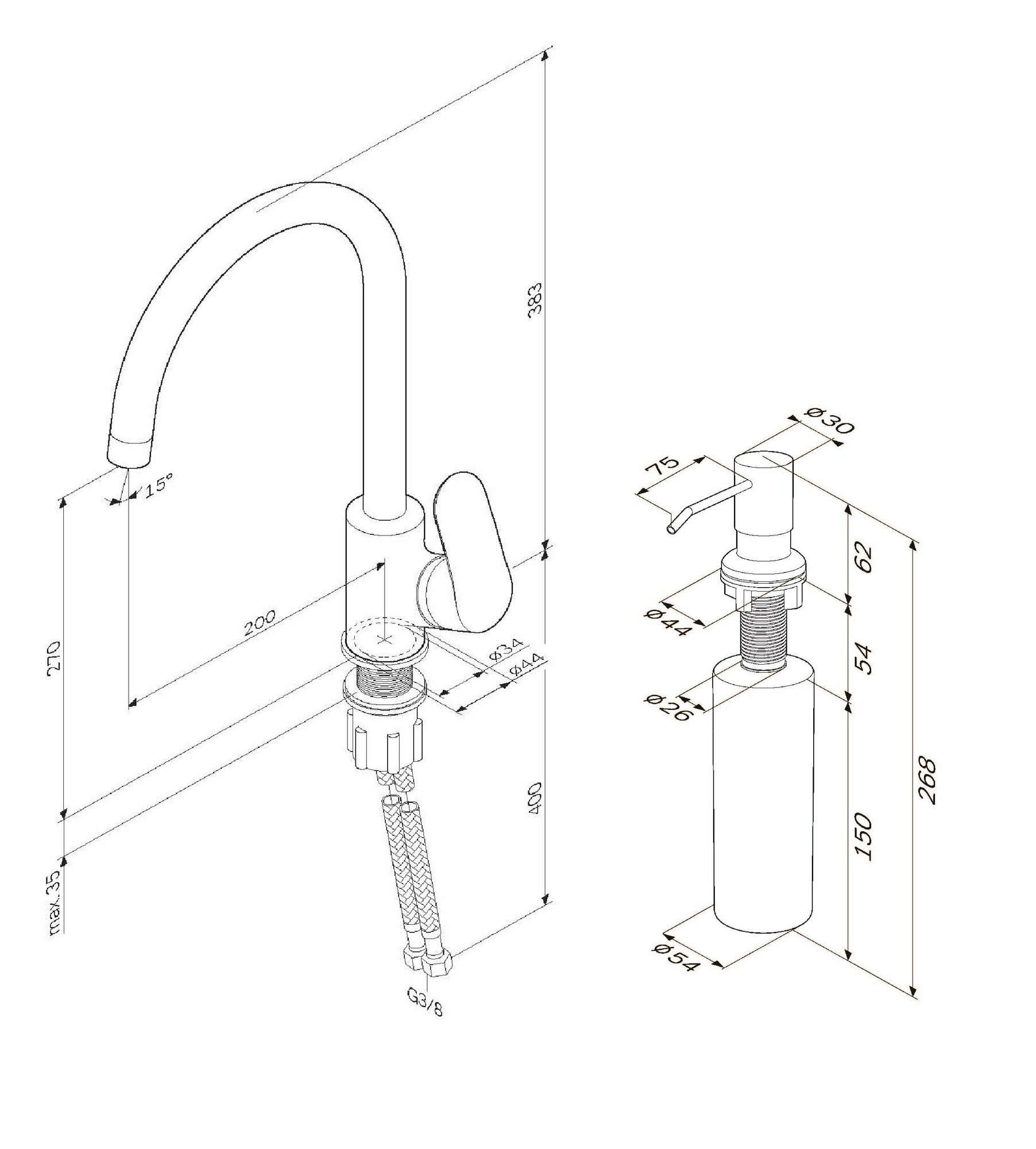 F8007D11 Like, набор 2в1: смеситель для кухни, диспенсер, сатин, шт.