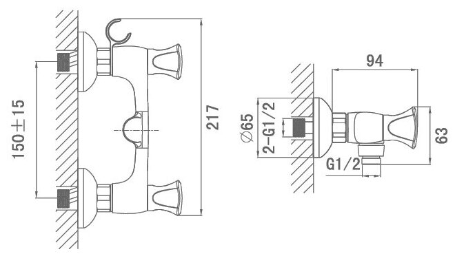 Смеситель для душа без излива D&K Hessen Grimm DA1383101, хром, вентильный, латунь.