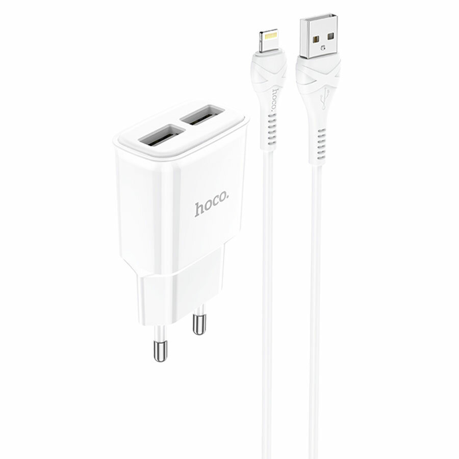 10 цен на Сетевое зарядное устройство HOCO C88A Star 2xUSB с Кабелем USB - Lightning, 2.4A, 10.8W, белый