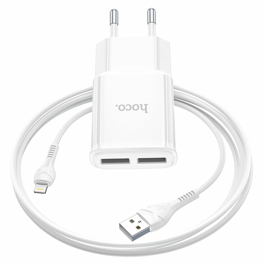 Сетевое зарядное устройство 2USB 2.4A для Apple 8-pin Hoco C88A 1м White