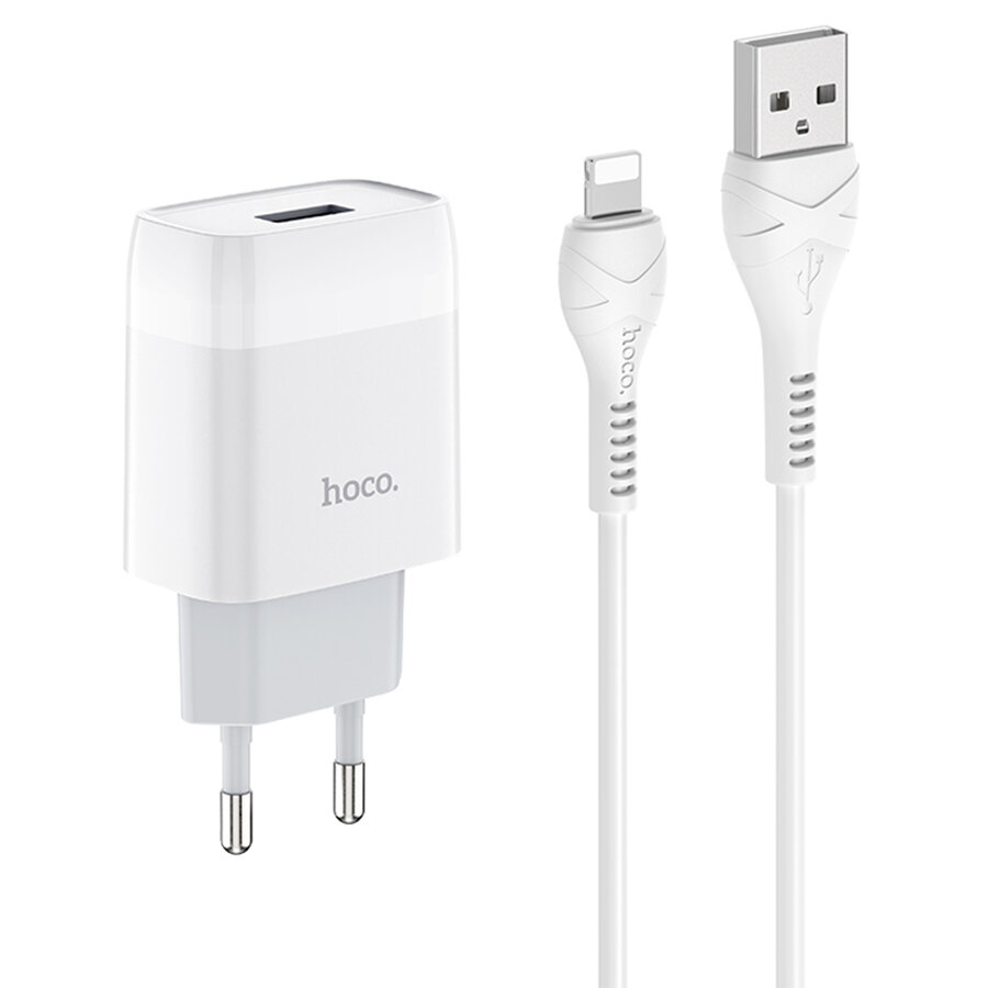 Сетевое зарядное устройство HOCO C72A Glorius single 1xUSB с кабелем USB - Lightning, 2.1A, белый
