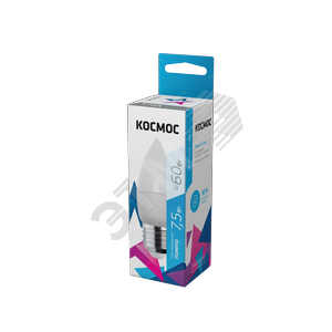 Лампочки светодиодные Космос Свечка 7,5Вт Е27 (аналог 60Вт) Нейтральный белый свет, 1 шт.