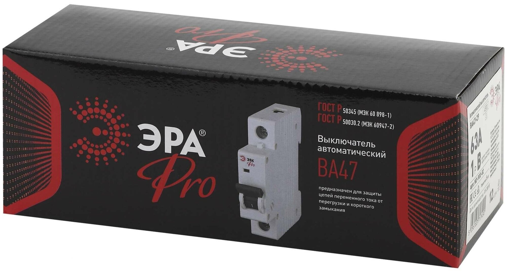 ЭРА Pro Автоматический выключательNO90082 ВА4729 1P 63А кривая B Б0031788 . информация: