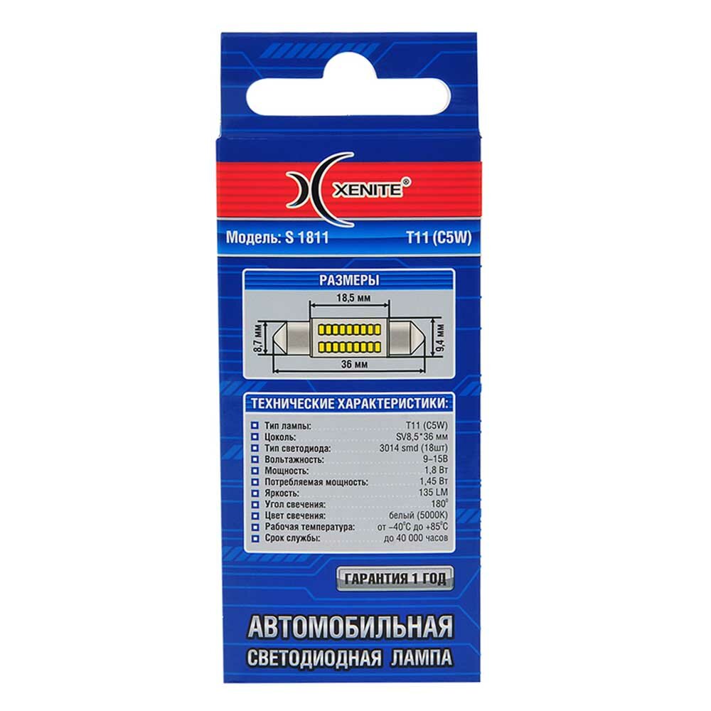 Лампа Светодиодная Сигнальная Т11(C5w) Sv8,5X36мм 5000K S1811 9-15V 1,8W Блистер 2 Шт 1009548 Xenite арт. 1009548