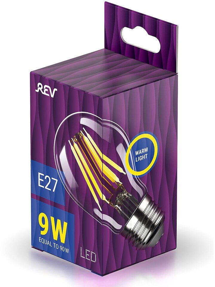 Лампа светодиодная филаментная Rev Е27 2700К 9 Вт 855 Лм 220 В груша A60 прозрачная информация: