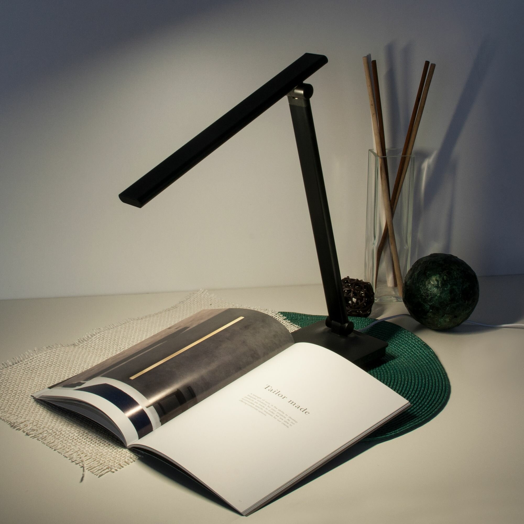 Настольная лампа светодиодная многофункциональная LED с будильником календарем беспроводной зарядкой часов