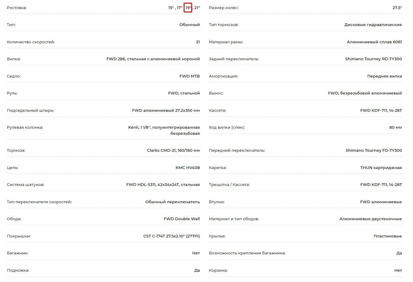 | Особенности | тип привода: цепной; рулевая колонка: безрезьбовая; наименование ободов: FWD Double Wall |