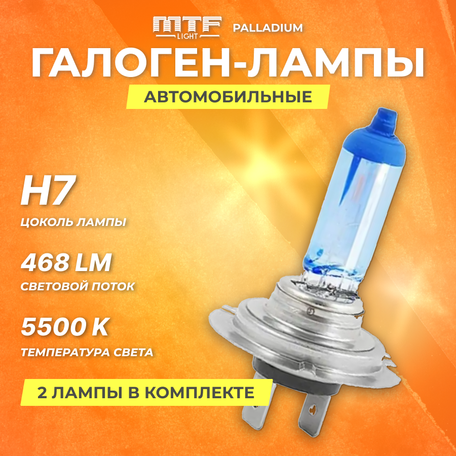 Комплект галогенных ламп H7 MTF light series Palladium со специальным покрытием излучают кристально-белый свет (5500K) комп.2шт.