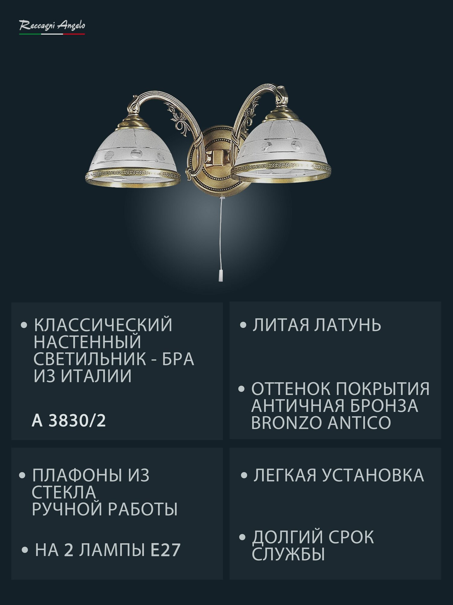 | Комплектация | бра Reccagni Angelo A 3830/2 |