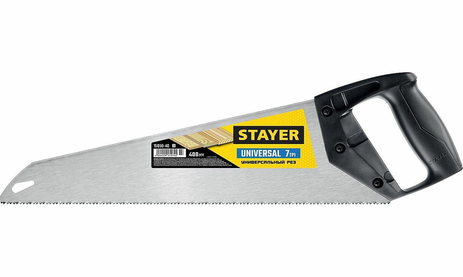 Отзывы на STAYER Ножовка универсальная (пила) "Universal",400мм, 7TPI, закаленный зуб, рез вдоль и поперек волокон, для средних заготовок, фанеры, ДСП, МДФ, STAYER ( 15050-40_z03 )