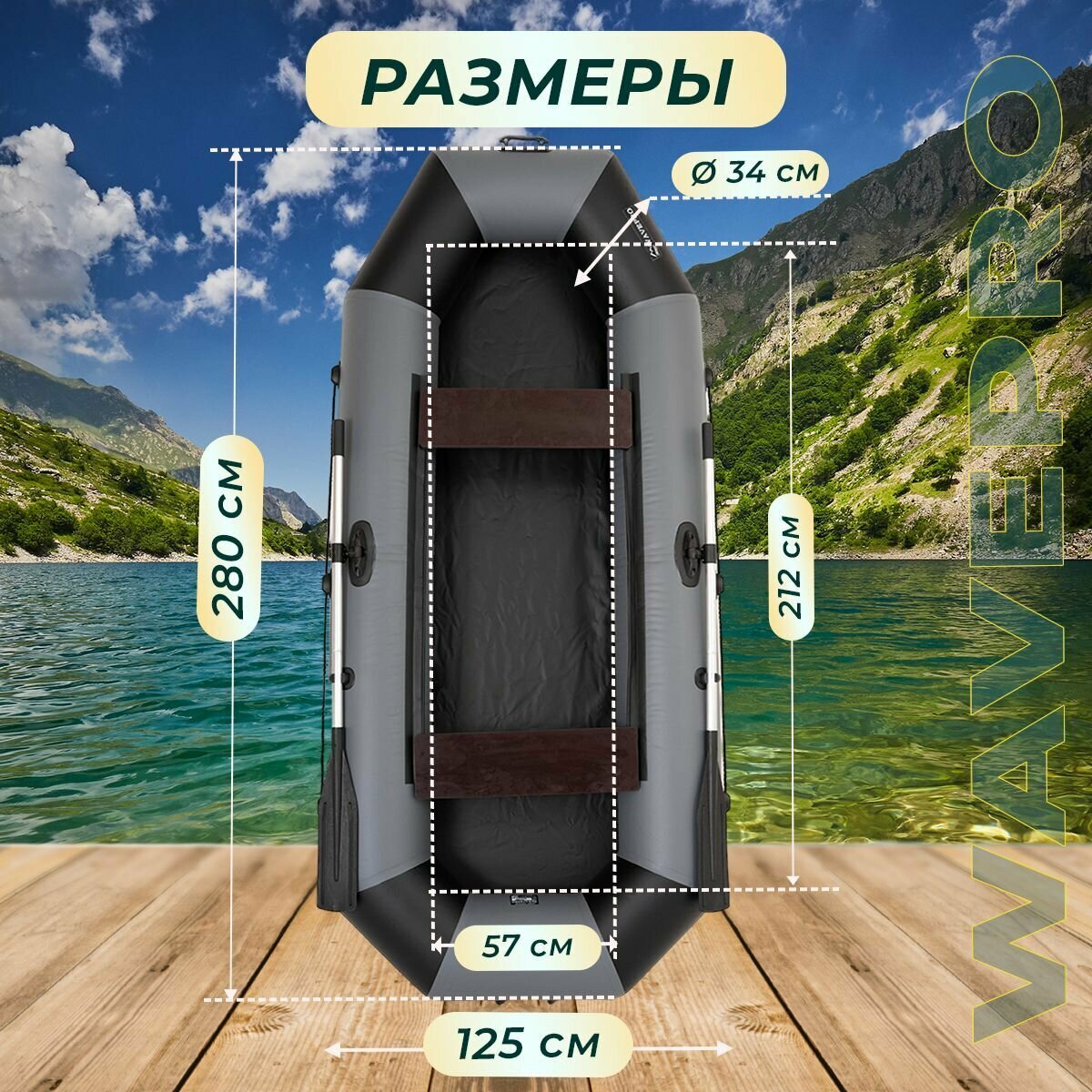 Лодка надувная для рыбалки ПВХ двухместная 280см под мотор - подарок мужчине
