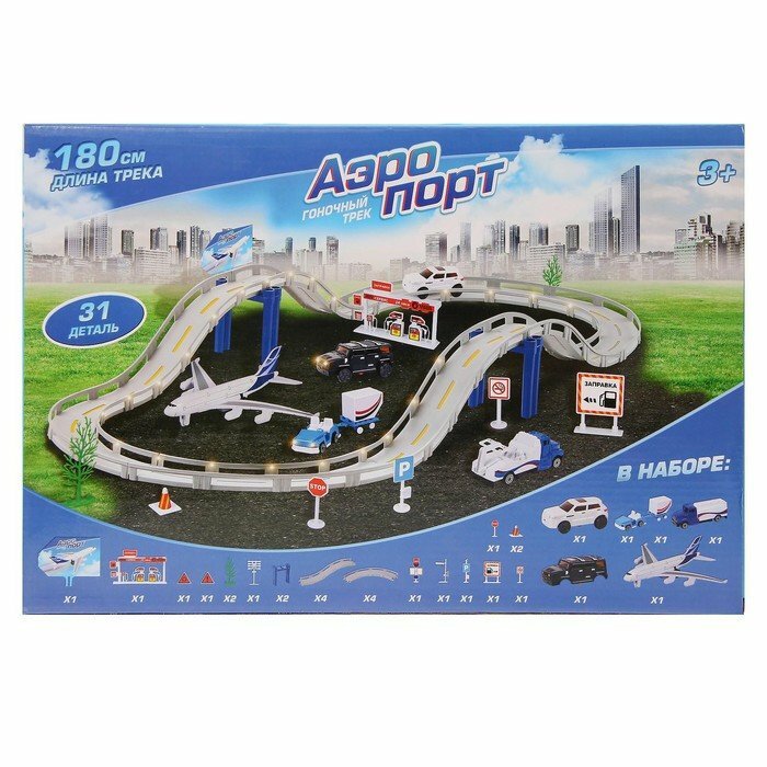 Автотрек «Аэропорт», 1 машина работает от батареек + сменный кузов, длина трассы 180 см (1 шт.)