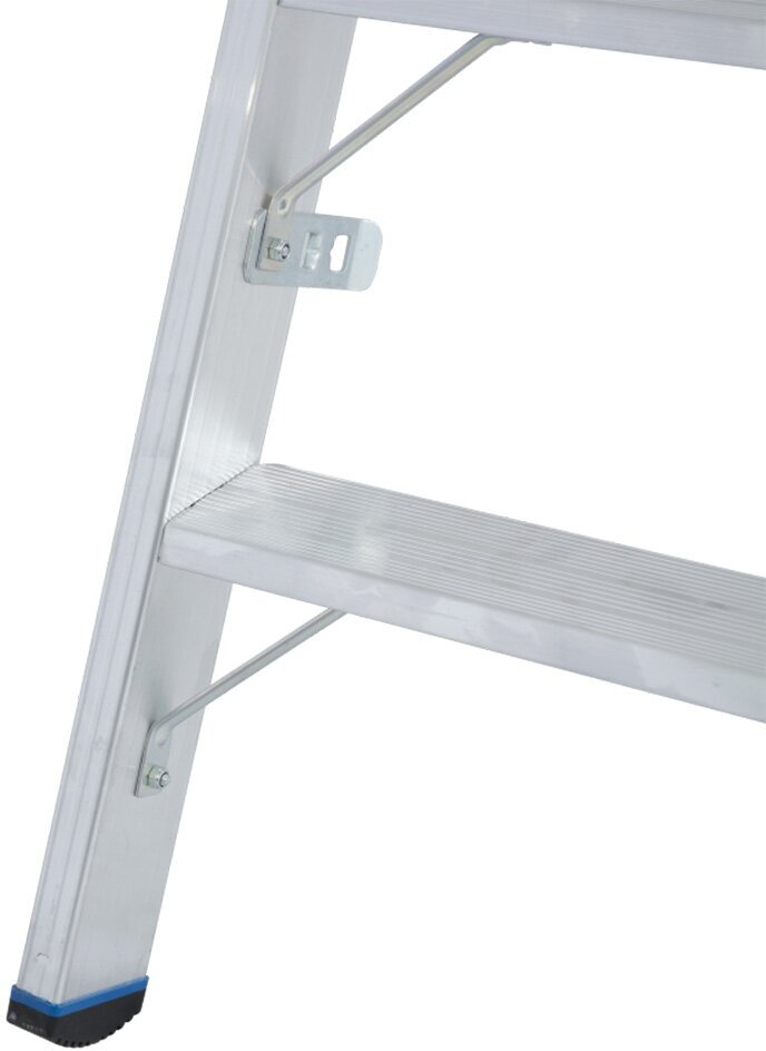 | Дополнительная информация | заменяемая полка для инструментов с крюком для ведра; опорная часть с прочными поперечными распорками; защитные верхние заглушки на опорной части лестницы исключают защемление при раздвижении стремянки |