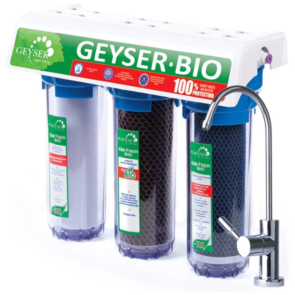 Фильтр для воды под мойку Гейзер Био 322, с краном, идеальное решение для семей с маленькими детьми, 100% удаление бактерий и вирусов, 11041