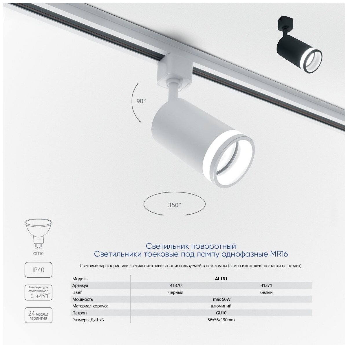Светильник трековый под лампу GU10, черный, AL161 арт. 41370
