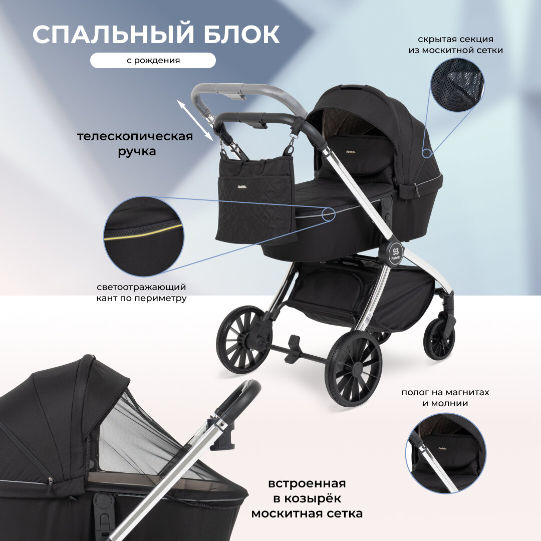 Коляска модульная 3 в 1 Farfello Baby Shell / BBS / цвет чёрный / серебряная рама / BBS-57 25 440 ₽
