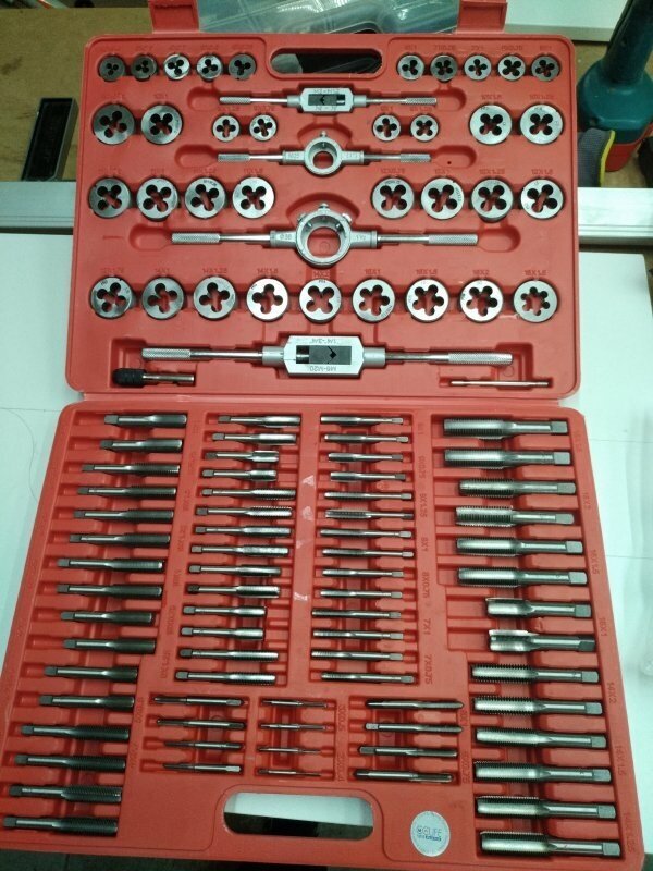 | Подробная комплектация | - 20 метчиков: M6x0.75, M6x1.0, M8x1.0, M8x1.25, M10x1.25, M10x1.5, M12x1.25, M12x1.5, M14x1.5, M14x2.0, M16x1.5, M16x2.0, M18x1.5, M18x2.5, M20x1.5, M20x2.5, M22x1.5, M22x2.5, M24x1.5, M24x3.0; - 14 плашек ⌀1-1/2": M6x0.75, M6x1.0, M8x1.0, M8x1.25, M10x1.25, M10x1.5, M12x1.25, M12x1.5, M14x1.5, M14x2.0, M16x1.5, M16x3.0, M18x1.5, M18x2.5; - 6 плашек ⌀2": M20x1.5, M20x2.5, M22x1.5, M22x2.5, M24x1.5, M24x3.0; - 5 экстракторов (№№ 1-5); - кернер; - ключ для метчиков Т-образный; - метчикодержатель; - плашкодеражатель; - адаптер; - отвертка; - кейс. |
