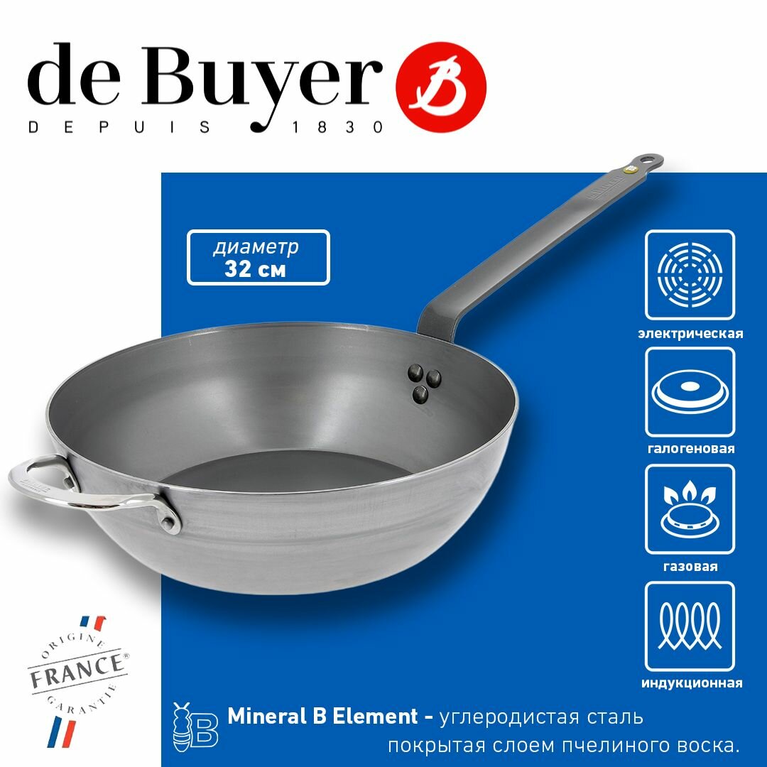 Сковорода глубокая De Buyer Mineral B Element, углеродистая сталь, 32 см 5614,32 информация: