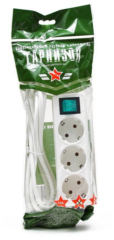 Удлинитель Гарнизон 3р 10А 2м с выкл. и заземлением, белый(EL-NB-G3-W-2)