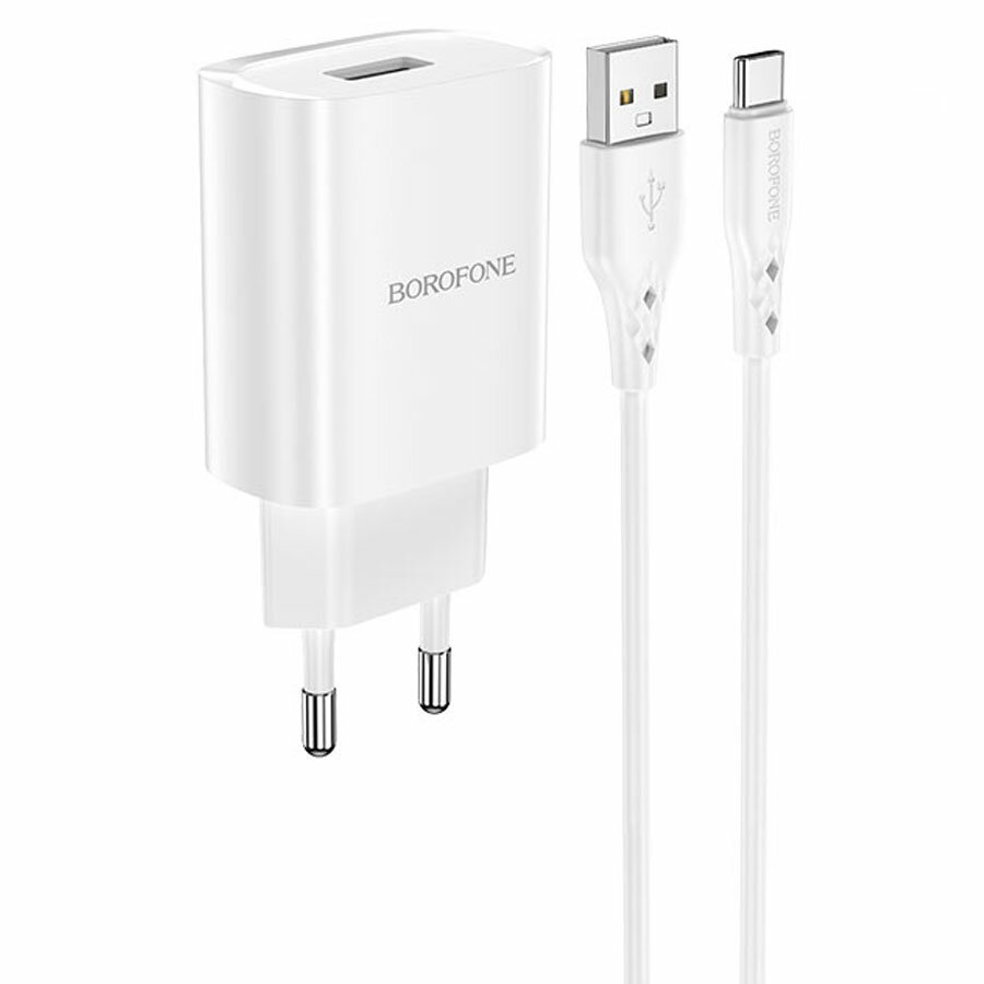 Сетевое зарядное устройство + кабель Type-C Зарядное устройство для телефона зарядка Android Borofone BN1 USB 2.1A 1м белый