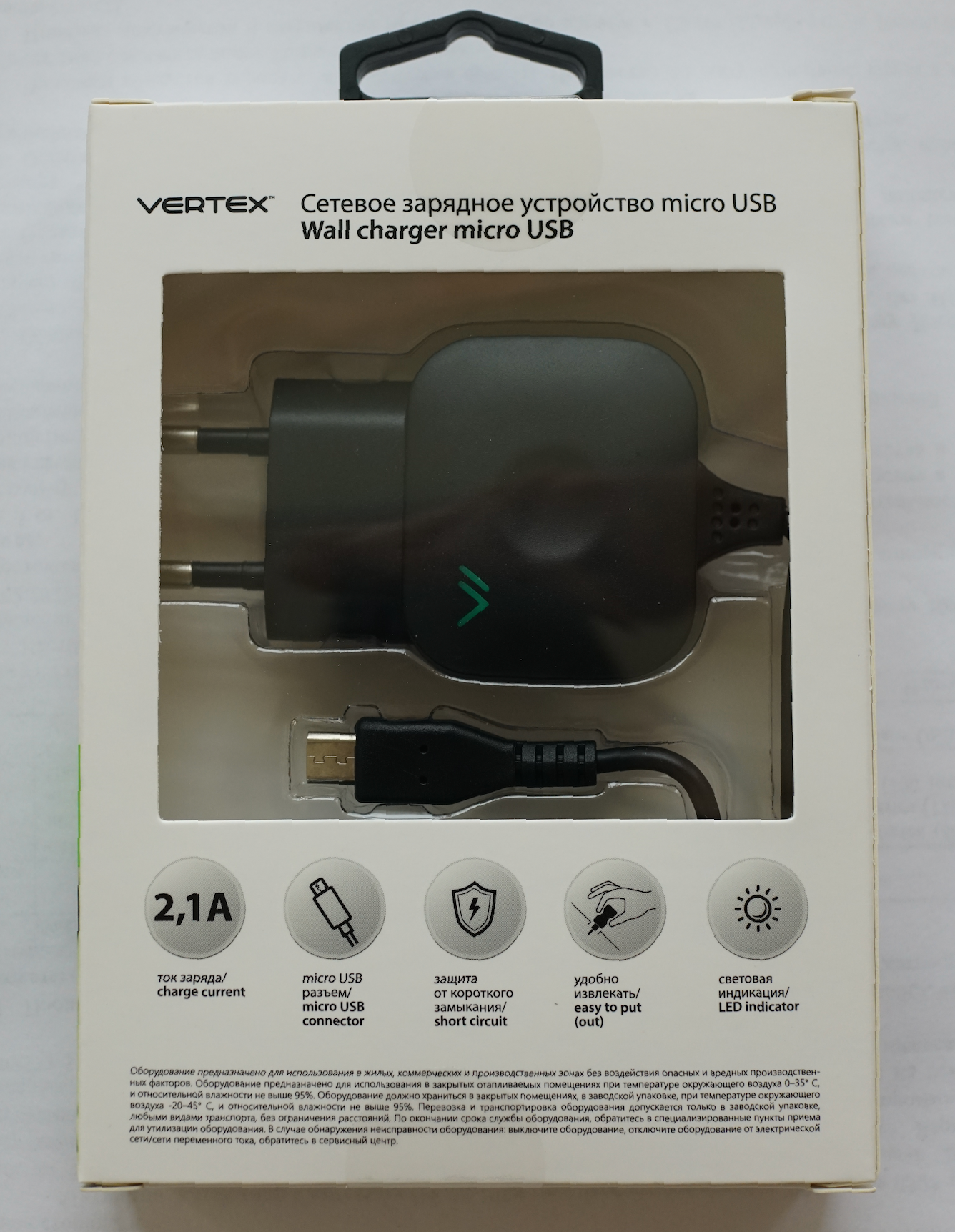 Отзывы на Сетевое зарядное устройство Vertex SlimLine 2.1A microUSB black