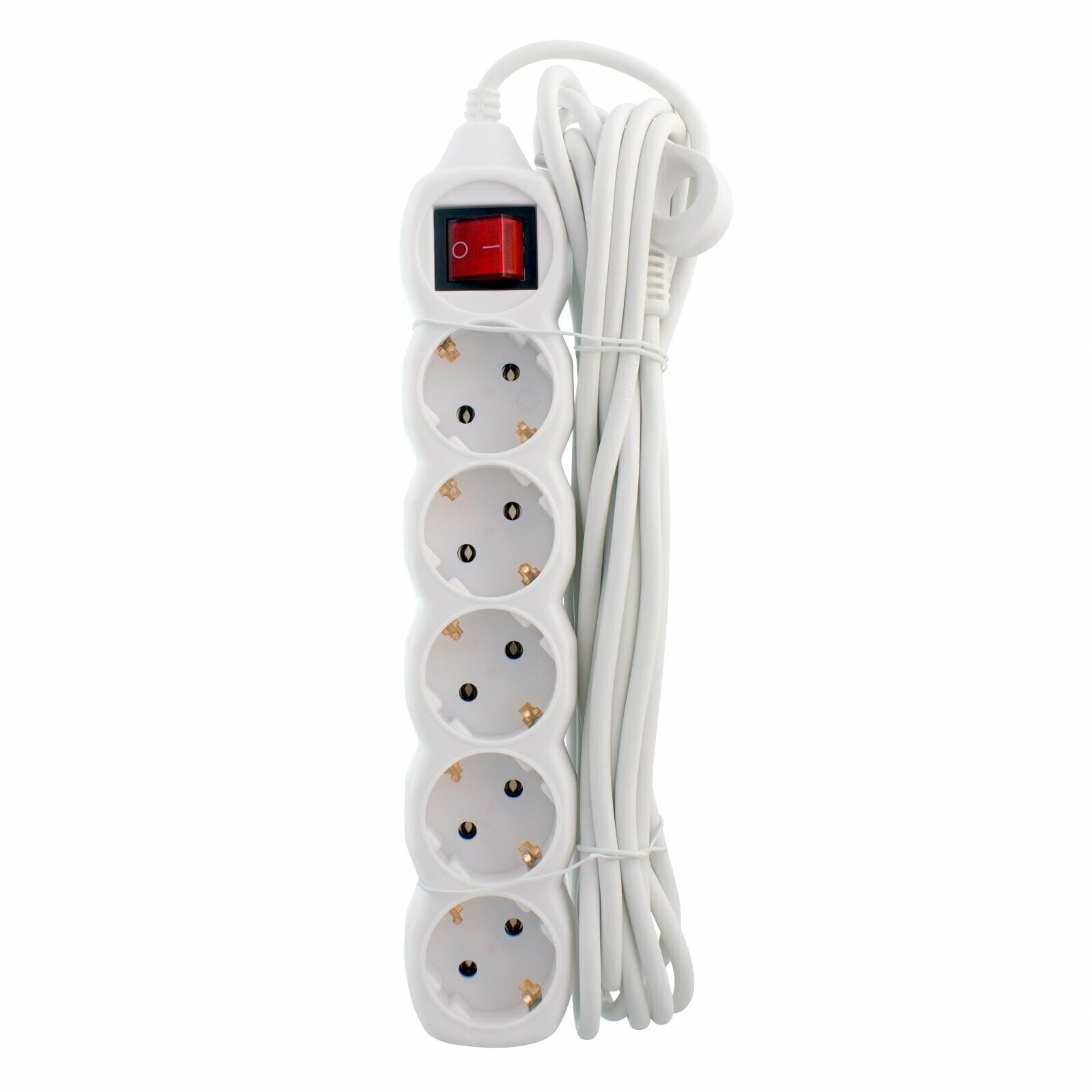Удлинитель сетевой бытовой c заземлением 5м старт 5 розеток, 10А, 2200Вт