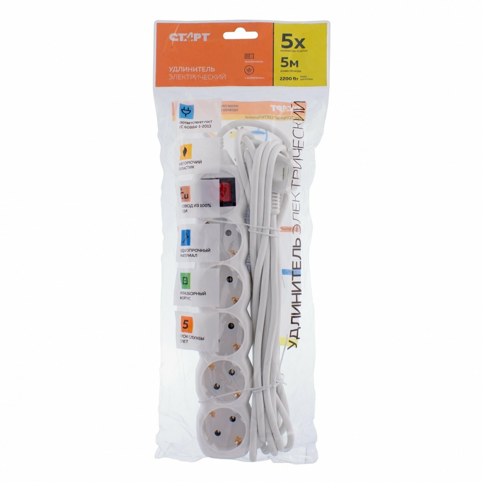 Удлинитель СТАРТ S 5x5-Z, 5 розеток, 5 м, с/з, 10А / 2200 Вт