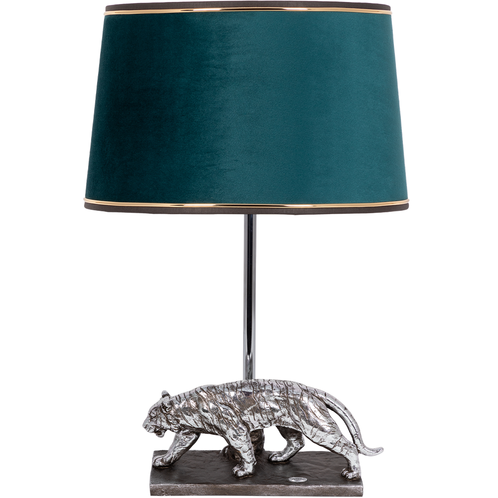 10 цен на Настольная лампа Bogacho Тигр серебристая с изумрудным абажуром Тюссо