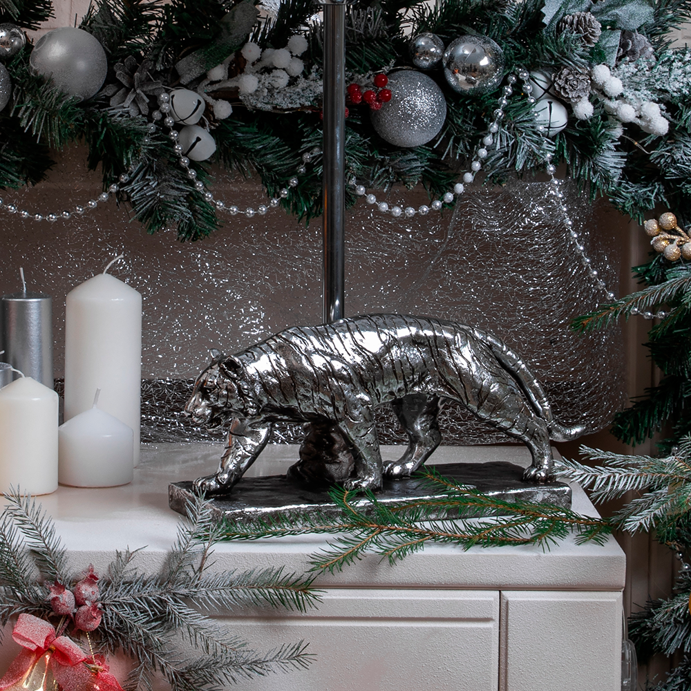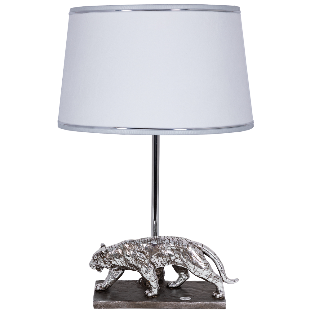 Настольная лампа Bogacho Тигр серебристая с белоснежным абажуром Тюссо информация: