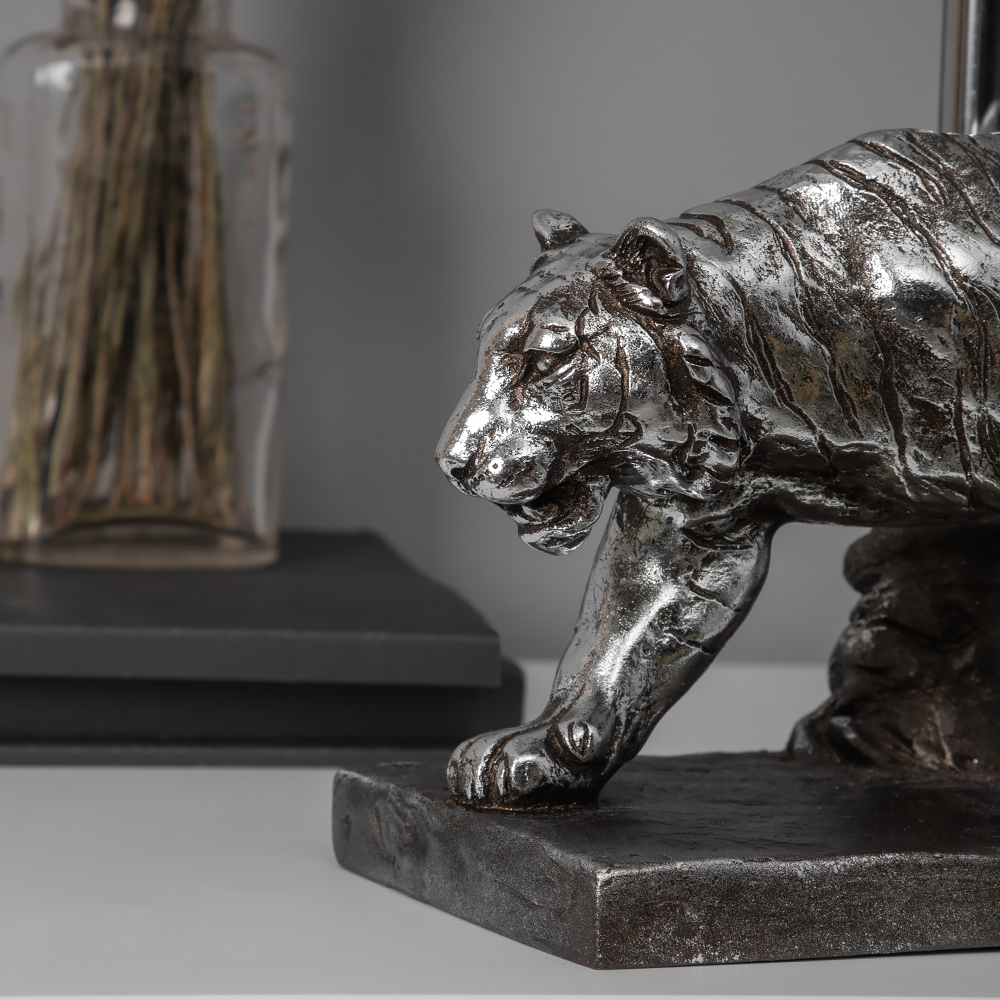 Отзывы на Настольная лампа Bogacho Тигр серебристая с белоснежным абажуром Тюссо