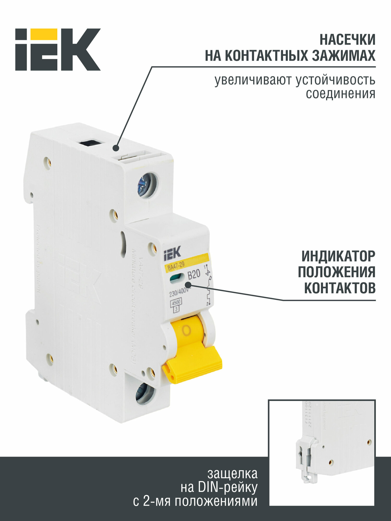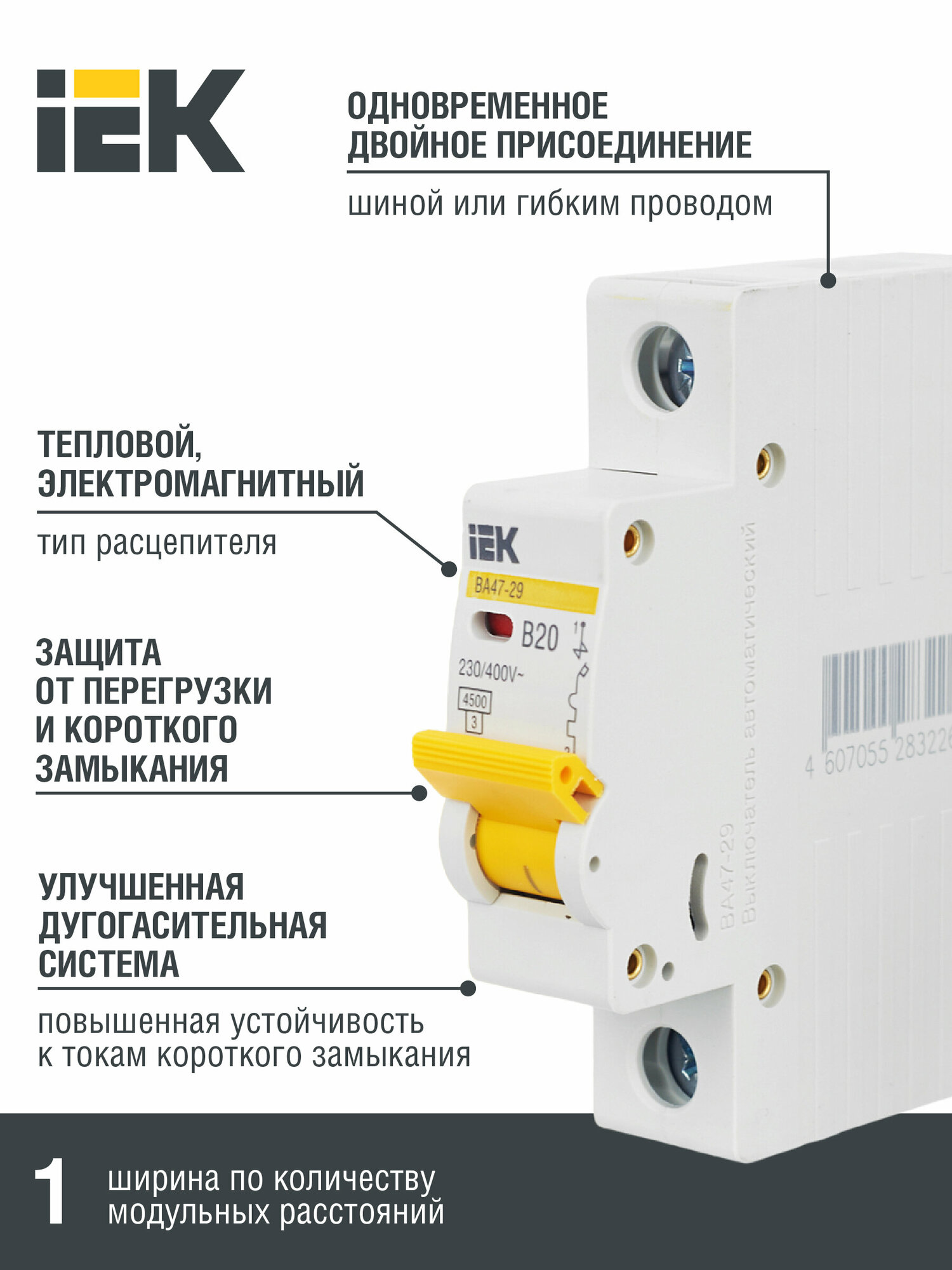Автоматический выключатель IEK 1п B 20А 4.5кА ВА47-29, MVA20-1-020-B информация: