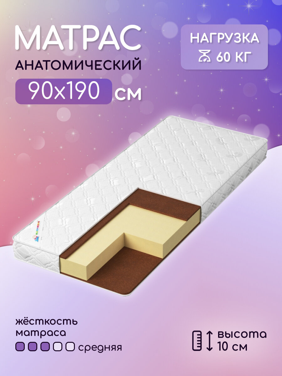 Матрас 200 на 90см на 10см - беспружинный - средняя жесткость - Капризун