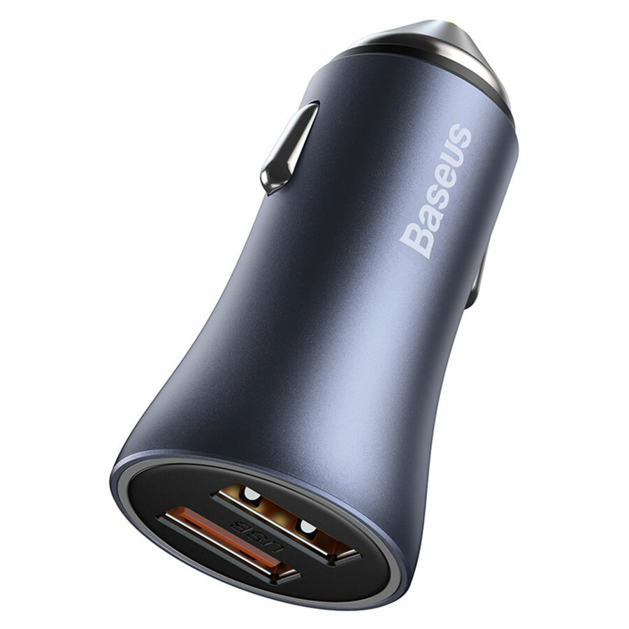 10 цен на Автомобильное зарядное устройство BASEUS Golden Contactor Pro Dual, 2xUSB с Кабелем USB - Type-C, 5A, 40W, темно-серый