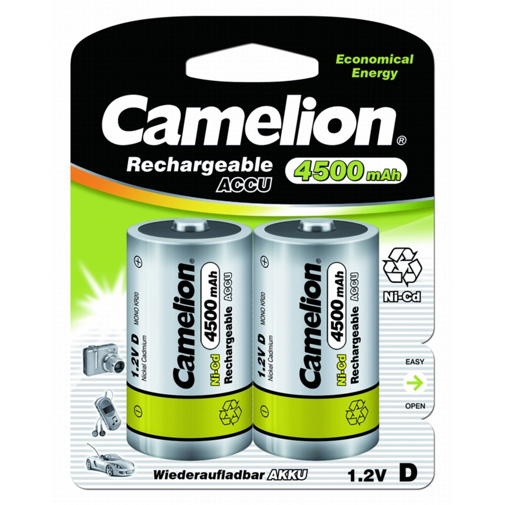 Camelion D- 4500mAh Ni-Cd BL-2 (nc-d4500bp2, аккумулятор,1.2В) (2 шт. в уп-ке)