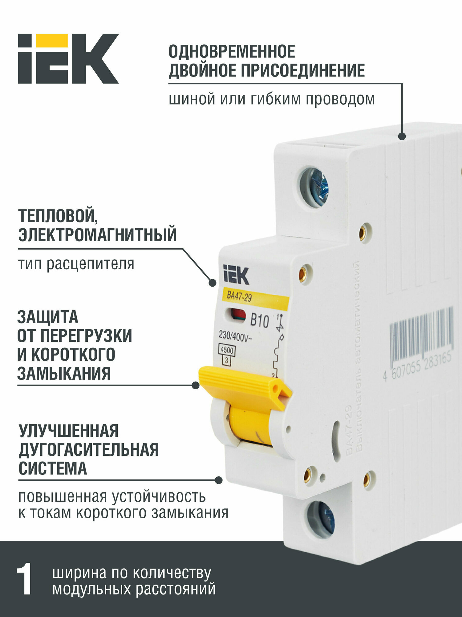 IEK Выключатель авт. мод. 1п B 63А ВА 47-29 4.5кА ИЭК MVA20-1-063-B