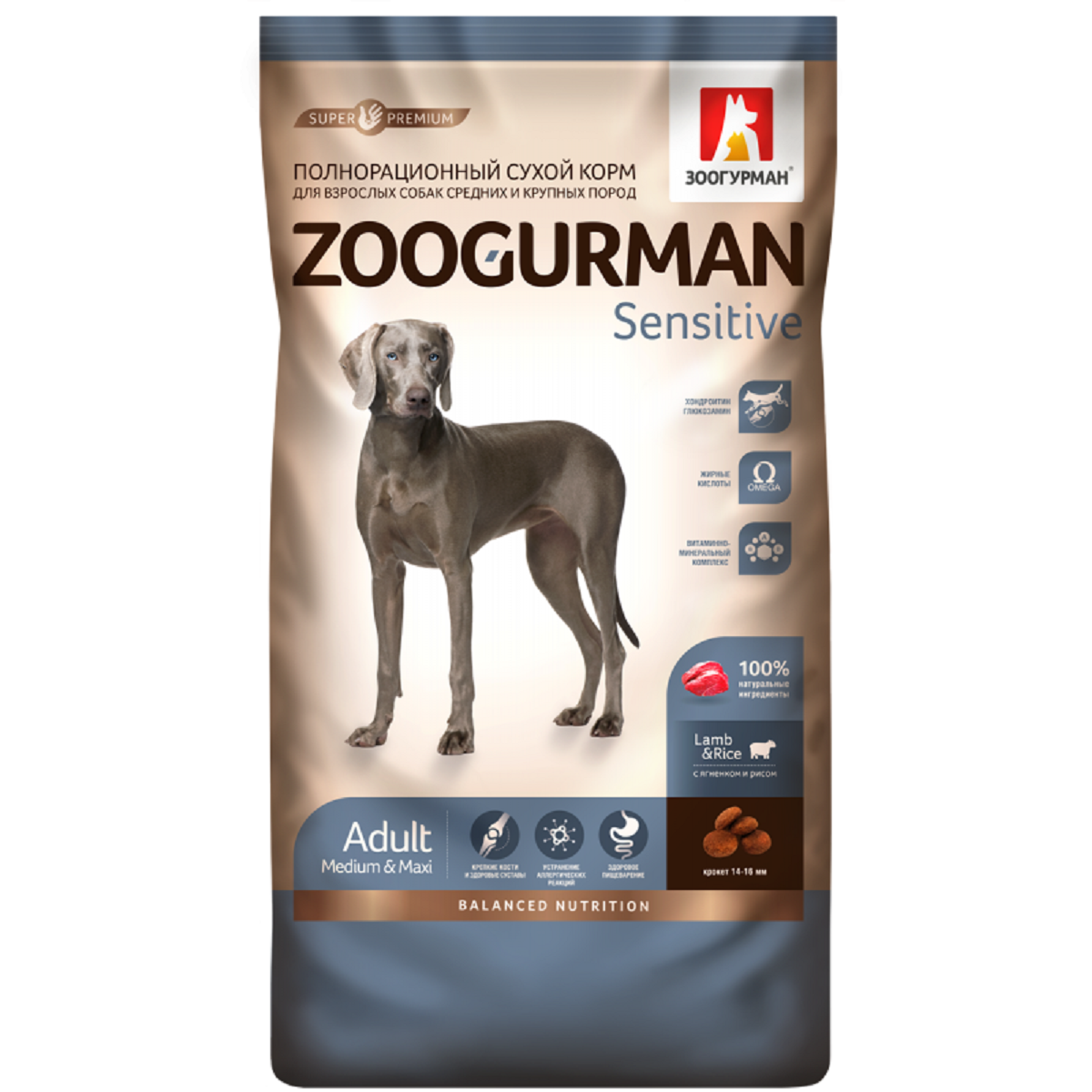 Zoogurman Sensitive - Сухой корм для взрослых собак средних и крупных пород, ягненком (12 кг)