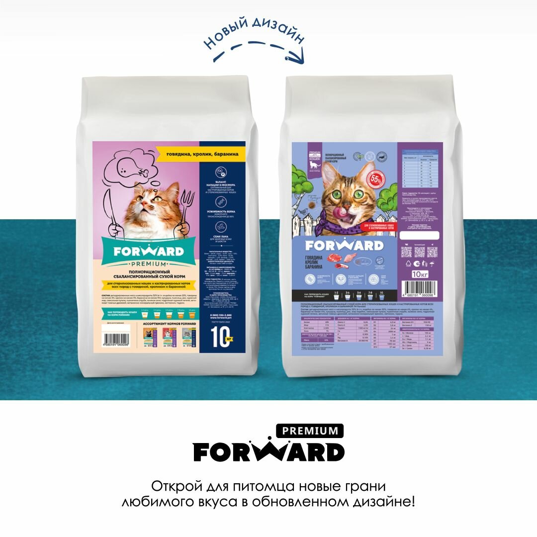 Корм сухой для стерилизованных кошек и кастрированных котов FORWARD с говядиной, кроликом и бараниной,10 кг информация: