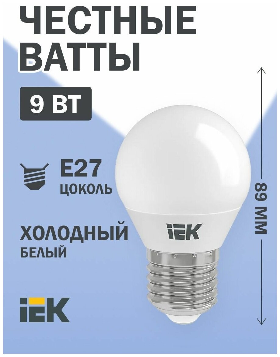 10 цен на IEK ECO шар 6500K, E27, G45, 9 Вт, 6500 К