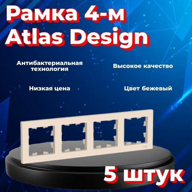 Рамка 4-постовая, универсальная, Schneider Electric/Systeme Electric AtlasDesign, бежевый(глянцевый) ATN000204(комплект 5 шт.) информация: