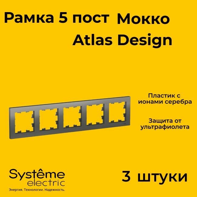 Рамка пятиместная Systeme Electric Atlas Design мокко ATN000605 - 3 шт. информация: