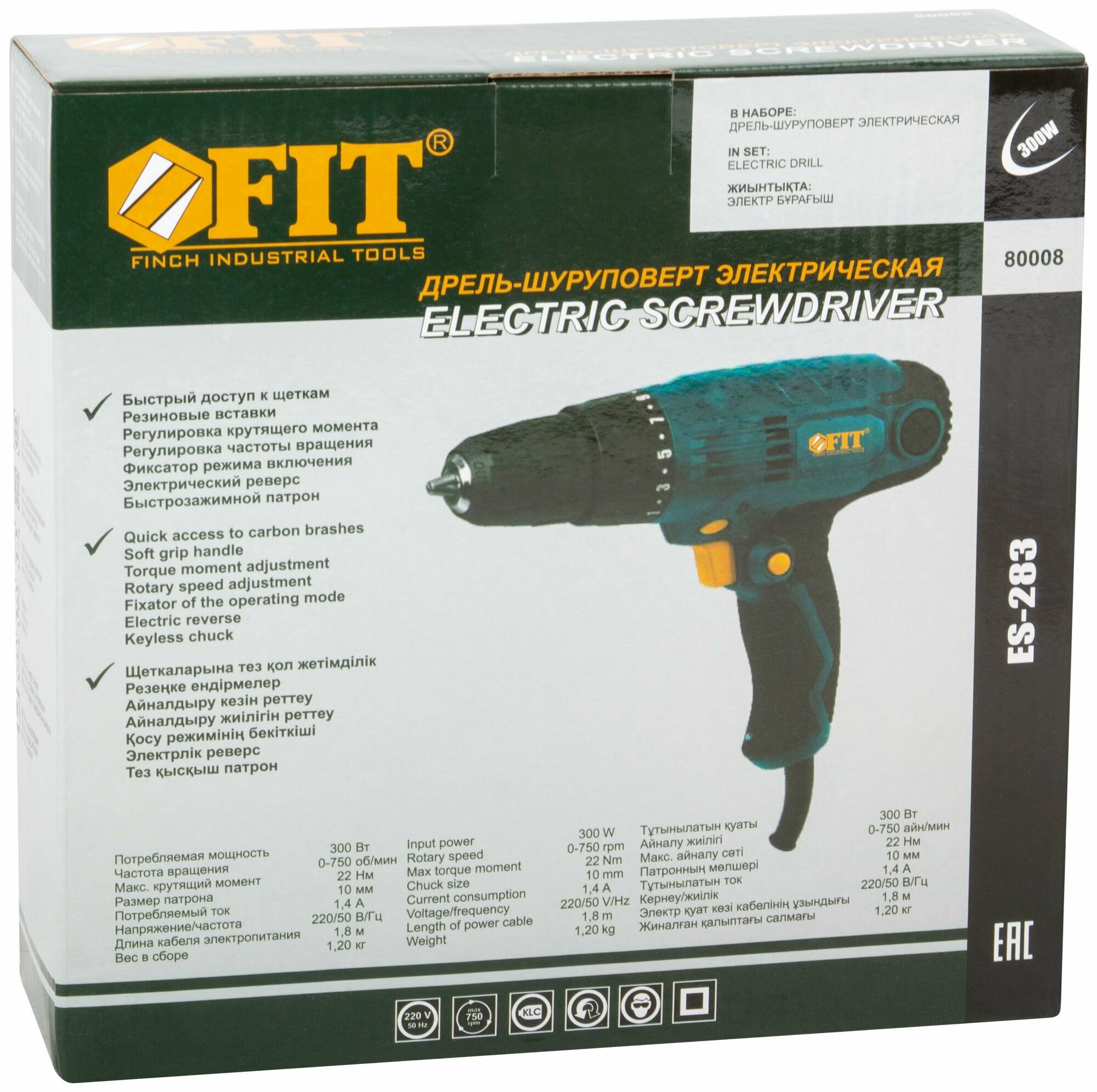 FIT Дрель-Шуруповерт Электрический 300 Вт; 0-750 об/мин 80008