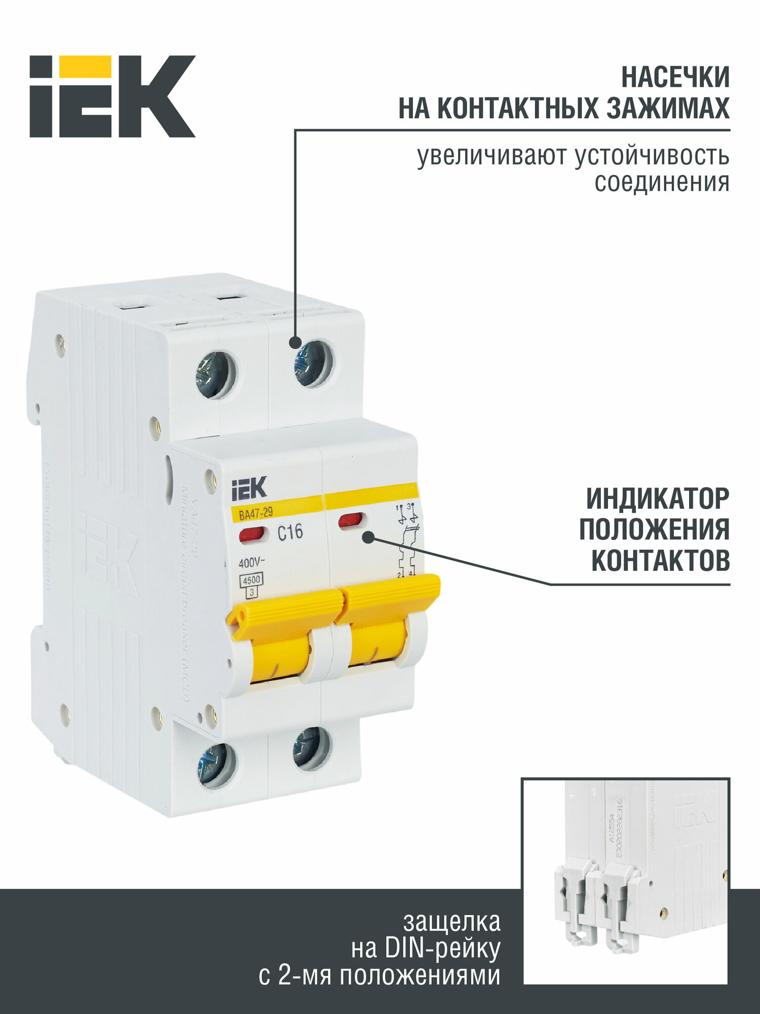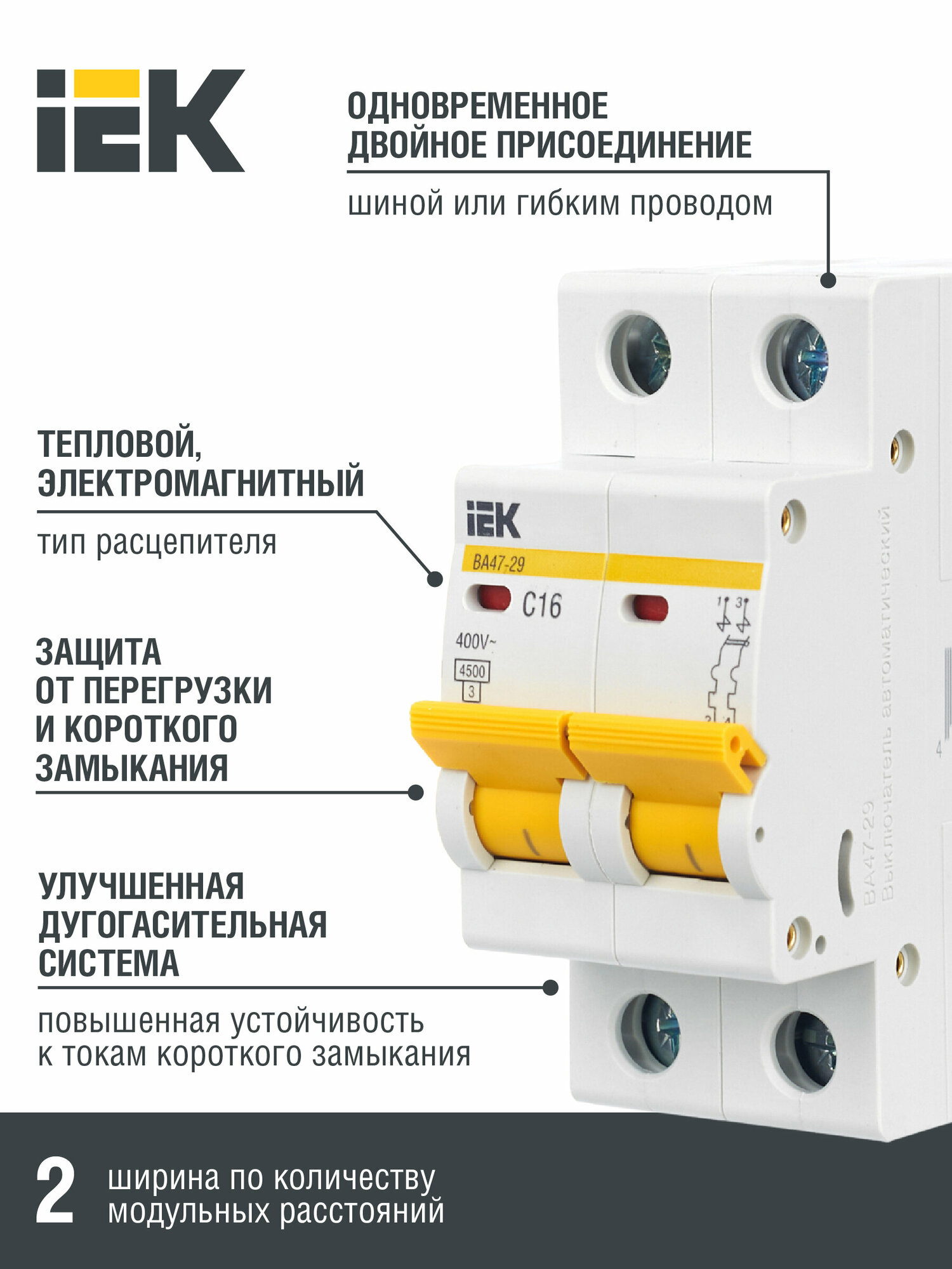 Модульный автоматический выключатель ВА47-29 2 полюса, 16А, х-ка C | код. MVA20-2-016-C | IEK ( 1шт. ) информация:
