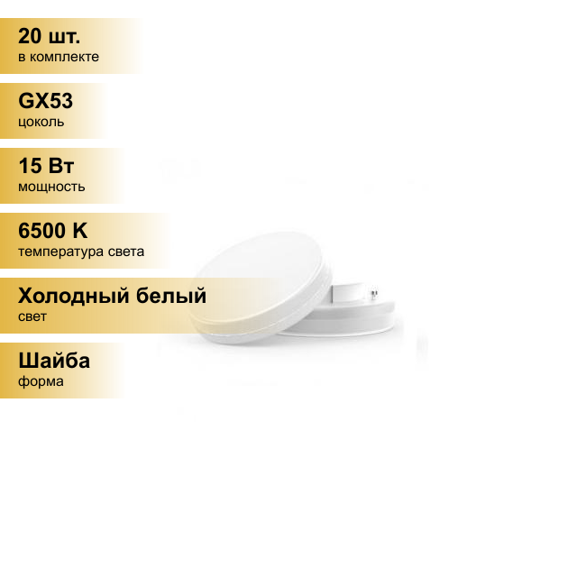 (20 шт.) Светодиодная лампочка Gauss Elementary GX53 15W(1020lm) 3000K 2K матовая, пластик/алюм. 83815 Теплый белый. Цоколь GX53 9 756 ₽